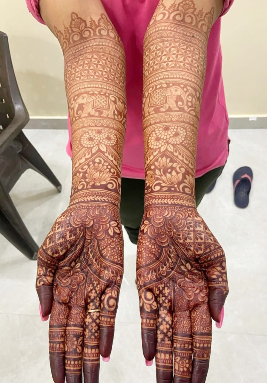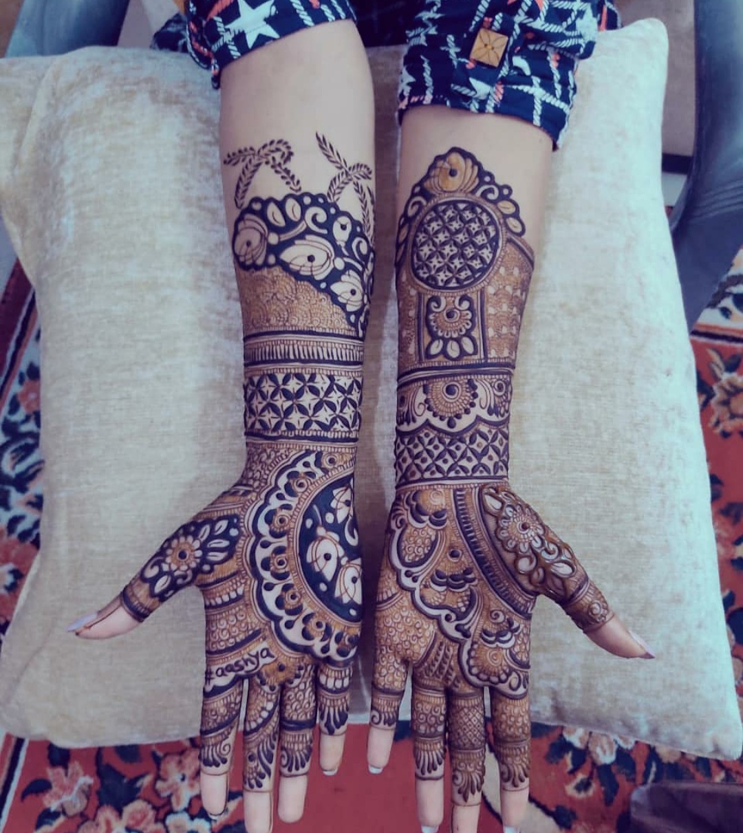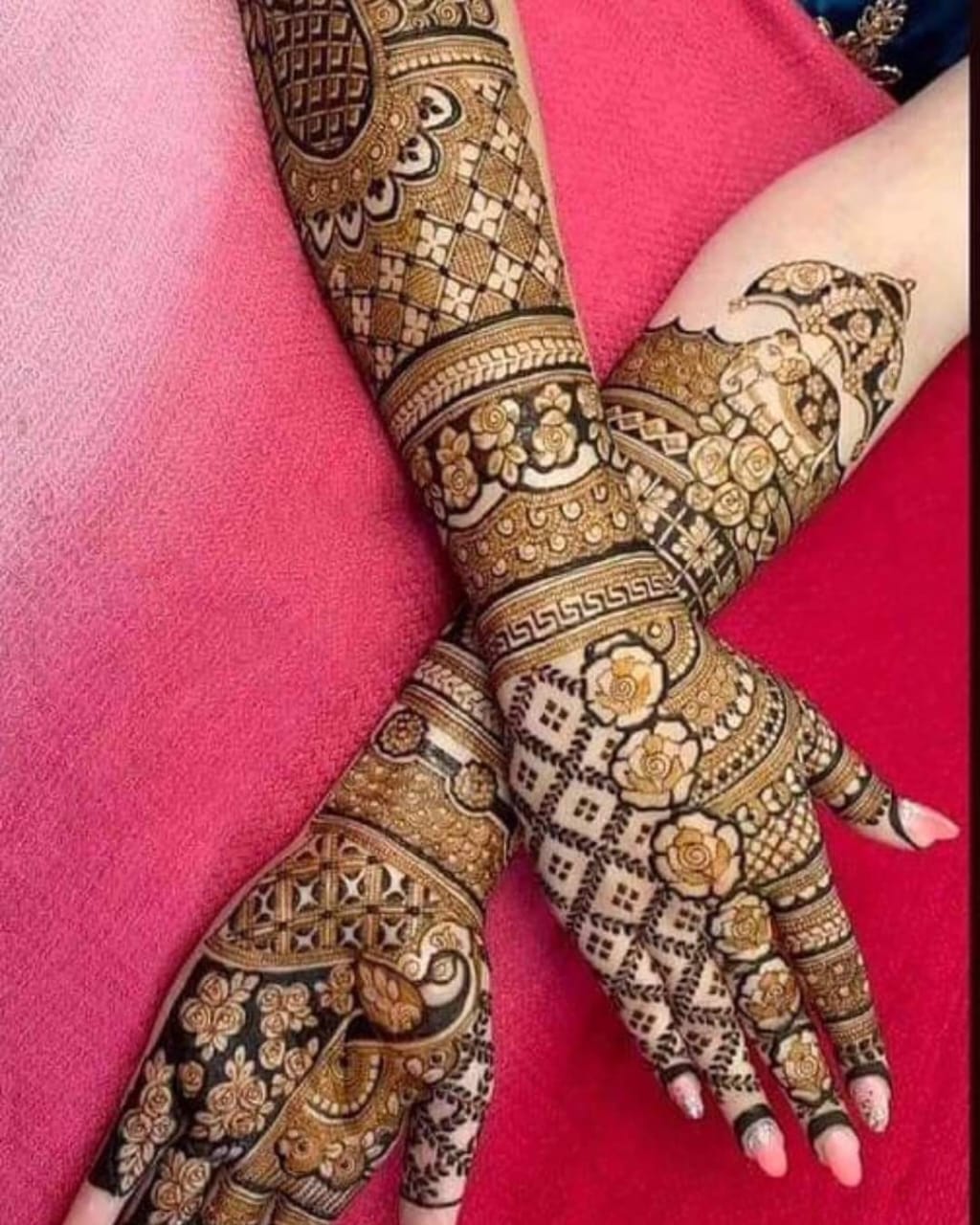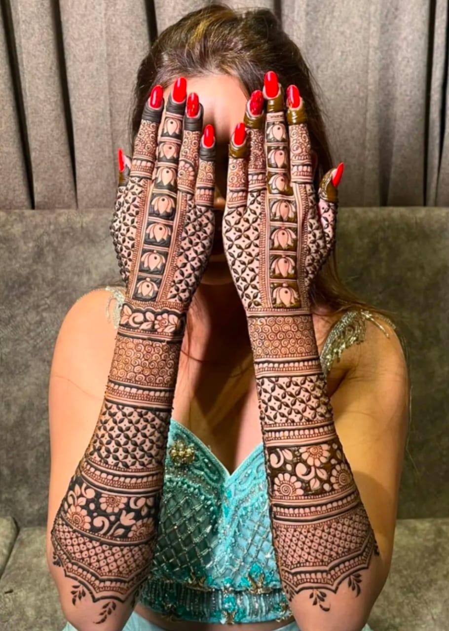 One such style of mehndi that’s trending is called New Madhuban Style mehndi design. The word ‘Madhuban Style’ originated in the india world and means intricate.